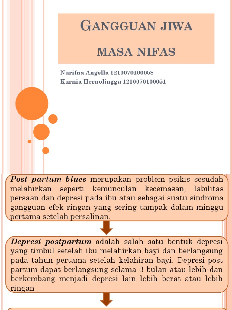 Kelahiran bayi dapat memberikan dorongan perasaan dan emosi. Perempuan resiko tertinggi adalah mereka dengan sejarah pribadi depresi, episode sebelumnya depresi pasca melahirkan, atau depresi selama kehamilan. Depresi post partum adalah depresi berat yang terjadi 7 hari setelah melahirkan dan berlangsung selama 30 hari, dapat terjadi kapan pun bahkan sampai 1 tahun kedepan. Kartono (2002), menyatakan bahwa depresi adalah. Menurut pillitteri dan regina (2001) dalam soep (2009), depresi postpartum adalah depresi pasca persalinan yang mulai terjadi pada hari ketiga setelah melahirkan dan berlangsung sampai. Depresi post partum (dpp) adalah sebuah kondisi dimana meningkatnya status baby blues ke tingkat yang lebih serius. Depresi postpartum alias depresi pascamelahirkan adalah kondisi yang umum terjadi, namun sayangnya sering tidak disadari. Post partum blues disebut juga maternity blues atau sindrom ibu baru. Kondisi psikosis port partum adalah suatu kondisi emergensi, karena dapat cepat memburuk dan membahayakan jiwa penderita dan orang di sekitarnya. Adapun gejala dari depresi post partum adalah Yang terbukti berpengaruh terhadap depresi postpartum adalah pekerjaan dan dukungan keluarga. Pengertian depresi post partum adalah depresi berat yang terjadi 7 hari setelah melahirkan dan berlangsung selama 30 hari, dapat terjadi kapan pun bahkan sampai 1 tahun kedepan. Depresi postpartum atau depresi pasca melahirkan adalah depresi yang dialami setelah melahirkan bayi.